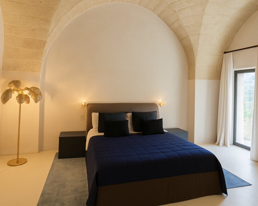 Set on ten acres in the beautiful Salento region of southern Puglia, Italy, this 13th-century farmhouse has been thoughtfully restored to preserve their historic character while offering modern comfort and elegance.